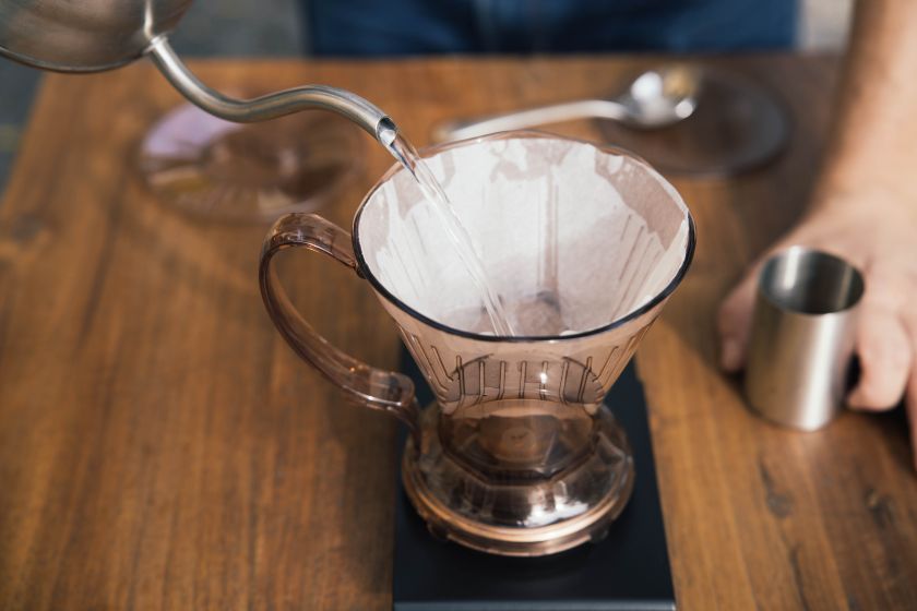 Z vašeho šálku filtrované kávy tvoří voda až 98,5 %. To je dost na to, aby člověku došlo, že její kvalita zásadně ovlivní chuť kávy, Příliš tvrdá voda komplikuje rozpouštění těch složek kávového zrna, které jsou zodpovědné za aroma, chuť a intenzitu vašeho oblíbeného nápoje. Vodu na přípravu kávy proto vždy filtrujte. V dnešní době je na trhu mnoho elegantních řešení ve formě filtračních konvic. Ty obvykle fungují na principu několikanásobného filtrování - přes jemnou tkaninu, následně přes uhlíkový filtr a iontoměnič, který absorbuje vápenaté ionty, až po další tkaninu, která zabraňuje průniku látek do vody již přefiltrované. My máme dobré zkušenosti také s filtry, které obohacují vodu o hořčík, který zvyšuje vnímanou sladkost kávy.