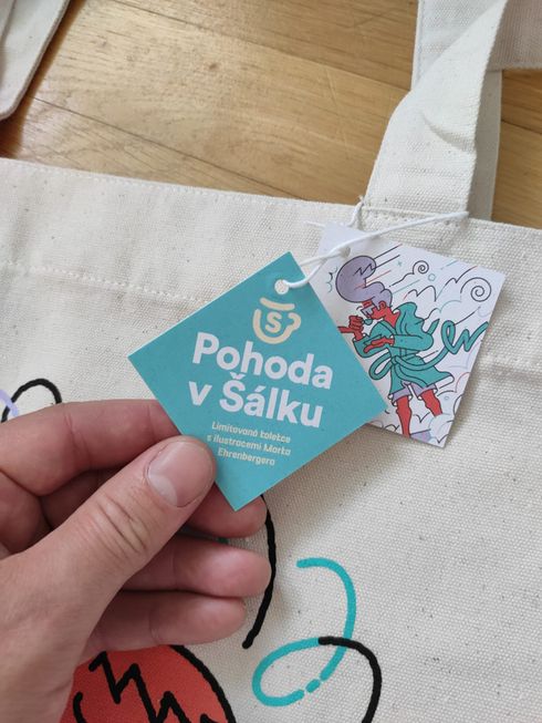 Plátěnka z edice "Pohoda v Šálku" od grafického designéra Marka Ehrenbergera, který nám namaloval nejen zeď v kavárně Můj šálek kávy, kterou milujeme skoro stejně jako kávu. Jeho ilustraci si můžete odnést i na plátěnce, se kterou je nákup prostě pohoda.