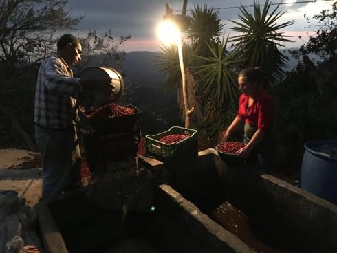 Pacas is the common variety around Chalatenango, together with the trendy Pacamara. When picked and processed right, it can be a real delight in the cup. The usual washed method is done by depulping cherries in manual or engine driven simple pulpers right at the farm or in the producer´s backyard. Prolonged fermentation lasts 72 hours and takes places in simple concrete tanks. Wet parchment is then dried on African beds for approx. 10 days, weather depending.